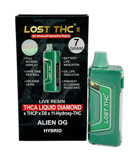 Lost THC V3 Liquid Diamonds Live Resin Disposable 7g blends consist primarily of high percentages of Delta 8 THC and THCP derived from hemp. The assortment of Lost THC V3 Liquid Diamonds Live Resin Disposable 7g blends are as follows: