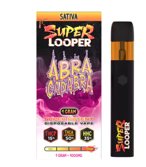 Looper Super Potent Disposable 1g blends consist primarily of high percentages of HHC, THCA and THCP derived from hemp. The assortment of Looper Super Potent Disposable 1g blends are as follows: