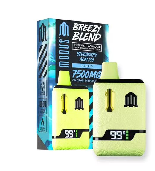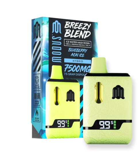 Modus Breezy Blend Disposable 7.5g blends consist primarily of high percentages of CB9A, Delta 8 THC and THCP derived from hemp. The assortment of Modus Breezy Blend Disposable 7.5g blends are as follows: