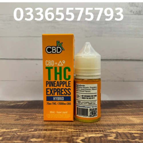 THC Vape Juice: CBD + Delta-9 Pineapple Express – Hybrid In Pakistan. Our Pineapple Express Hybrid Vape Juice is formulated to give you the uplifting vibes of a good sativa combined with the deep relaxation of more mellow strains Delta-9 THC Pineapple Express Vape Juice is an ideal blend of good vibes and gentle relaxation. Combining the mood elevation of a sativa with the deep chill feel of a mellow strain, this hybrid THC vape liquid gives you a wonderfully balanced delta-9 THC vape experience, within the legal limits set forth by the 2018 US Farm Bill.