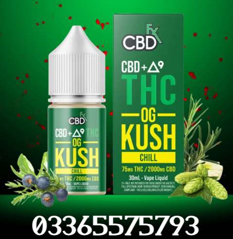 Experience the powerful relaxation effects of our CBD + Delta-9 THC OG Kush Vape Juice in Pakistan. This premium vape juice captures the deeply calming essence of the legendary OG Kush strain, offering you the distinct flavor and soothing “chill” of this classic cannabis strain—while staying within the legal THC limits set by the 2018 Farm Bill. Enhanced with full-spectrum CBD, this THC vape juice delivers immediate relaxation for both mind and body.